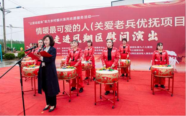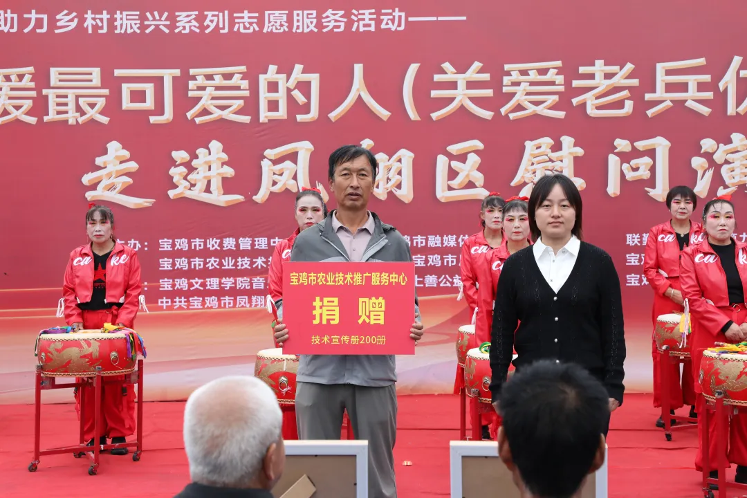 捐赠仪式后,慰问演出在凤翔区乔亚丽鼓舞团带来的《盛世欢歌》中正式开始。震天的鼓点奏响时代强音,翩跹的舞姿跃动盛世华章,迅速点燃全场气氛。