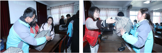 此次新年爱心温暖包是宝鸡上善公益联合会经过前期细致摸排后精心准备的,包含冲锋衣、加绒运动裤、保暖手套、御寒帽子与暖心保温杯;针对3名重度残疾、不便到校的居家学生,则按需精准采购了生活必需品。现场,65名在校困难学生代表接过温暖包,脸上绽放出灿烂的笑容,连连向爱心人士道谢。华瑞批发市场的商户们也向学校移交了爱心物资,包括女童棉鞋31双、打底裤284条,以及手套、口罩、帽子、围巾、袖套等共计952件(个),并委托学校将这批物资分发给有需要的学生。