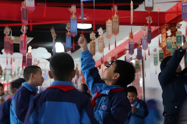 上百张谜面条幅与彩带交相辉映,将活动现场装扮得五彩缤纷、红红火火。志愿者们在协助工作人员开展互动的同时,兴高采烈又井然有序地参与到观看传统锣鼓和猜谜竞答,现场气氛热烈活跃:你一言我一语,争先恐后地踊跃互动,一个个有趣的谜面在众人的思索与讨论中被纷纷破解。