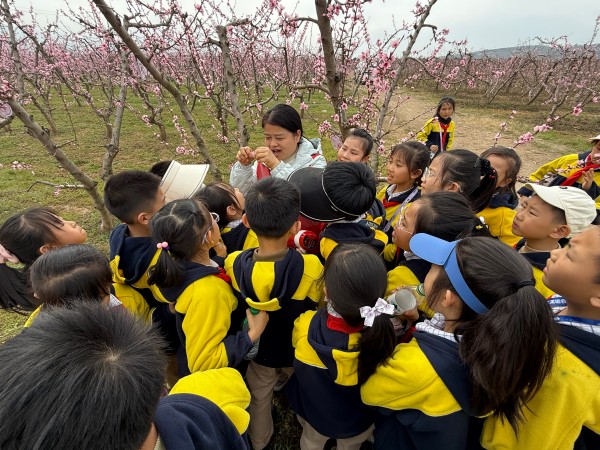 孩子们详细介绍了园区的生态环境与桃树生长知识,从抽芽到结果的奇妙过程,让孩子们对“生命成长”有了更直观的理解。