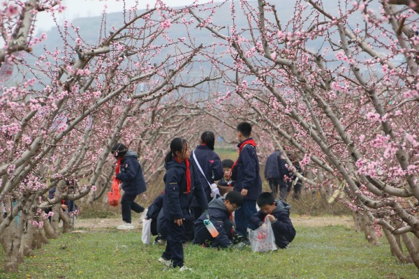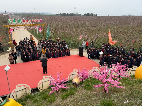 全体学生在主持人的带领下,庄严宣读环保宣言:“爱护自然,敬畏生命;珍惜大地,敬爱他人……认养一棵树,守护一份甜。”稚嫩而坚定的声音在桃林间回荡,仿佛为每一棵桃树都注入了鲜活的生命力。
