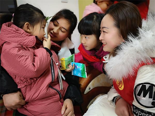 ▲宝鸡市东方好莱坞商贸有限公司给侯天祥的家人送上新年红包