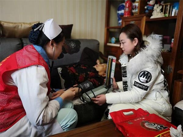 ▲人民医院重症监护室王主任为侯天祥母亲检查身体