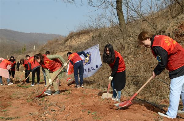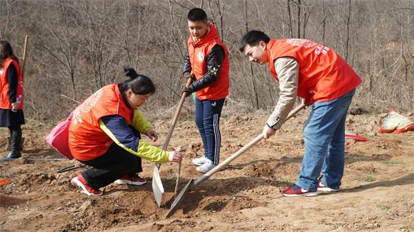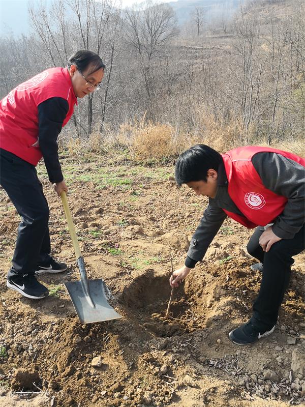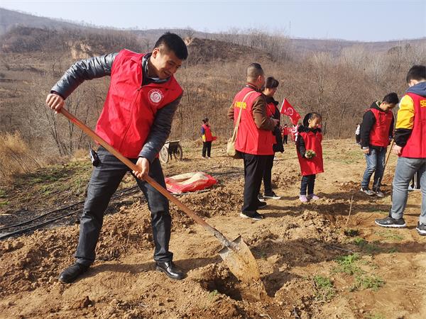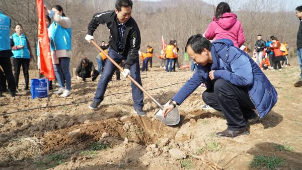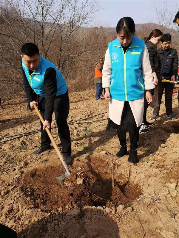 市中心医院23名志愿者参加植树活动,共栽种57棵桃树。