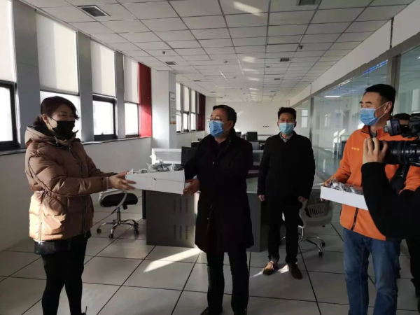宝鸡新闻网联合会志愿者走进宝鸡新闻网,为新闻网一线工作者送去护目镜15副,宝鸡新闻网总编辑冯蓓接受了捐赠。