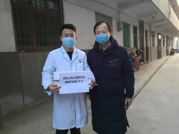 陈仓区联合会志愿者走进陈仓区,为陈仓医院的医护人员和陈仓区电视台新闻工作者,送去护目镜。
