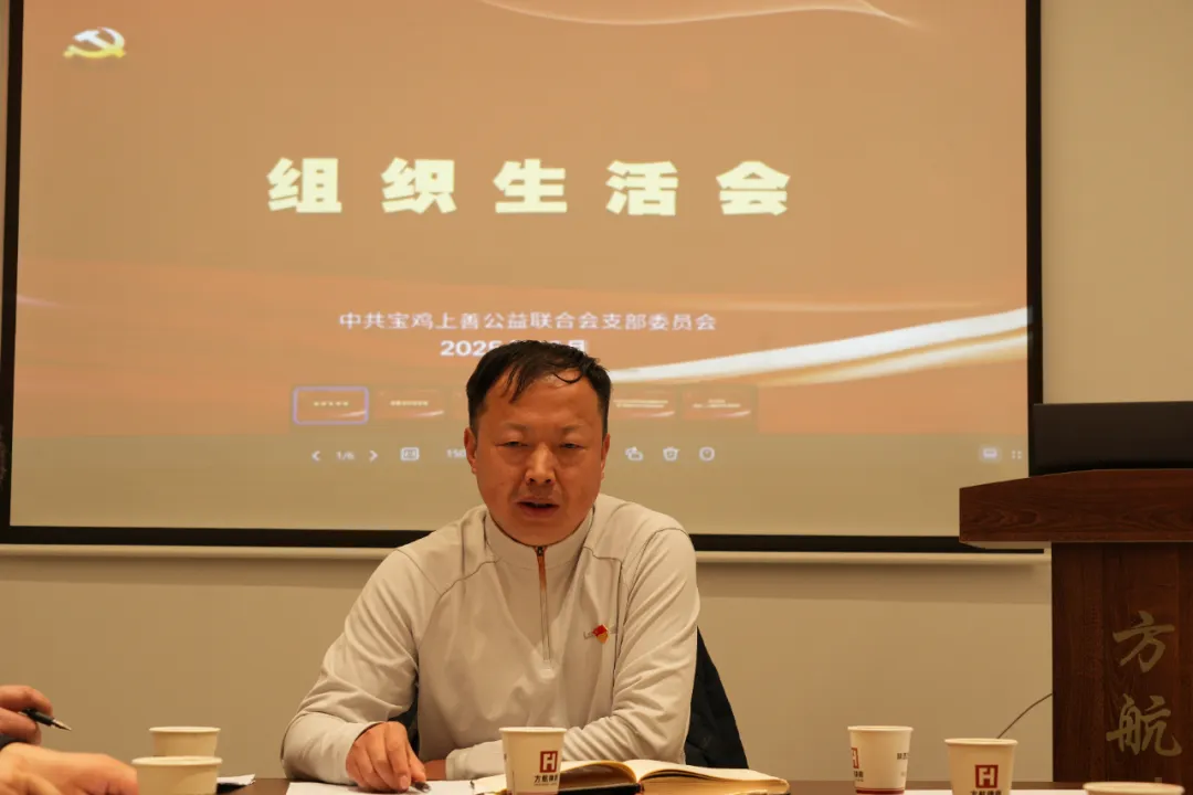 2025年12月19日,宝鸡上善公益联合会党支部于陕西方航律师事务所会议室召开了一场主题为“总结评议,凝心聚力”的组织生活会。此次会议由联合会党支部书记张红兵主持,全体党员齐聚一堂,共同回顾过往、剖析问题、规划未来。