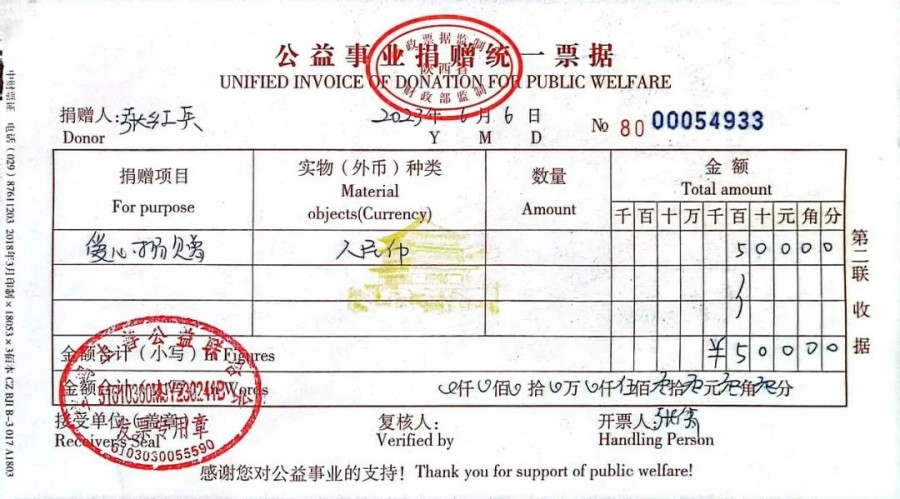 日前,宝鸡上善公益联合会党支部书记、会长张红兵,将本人的2022年四季度陕西好人慰问金和讲课费共计2000元,全部捐赠给联合会,助力公益活动的开展。