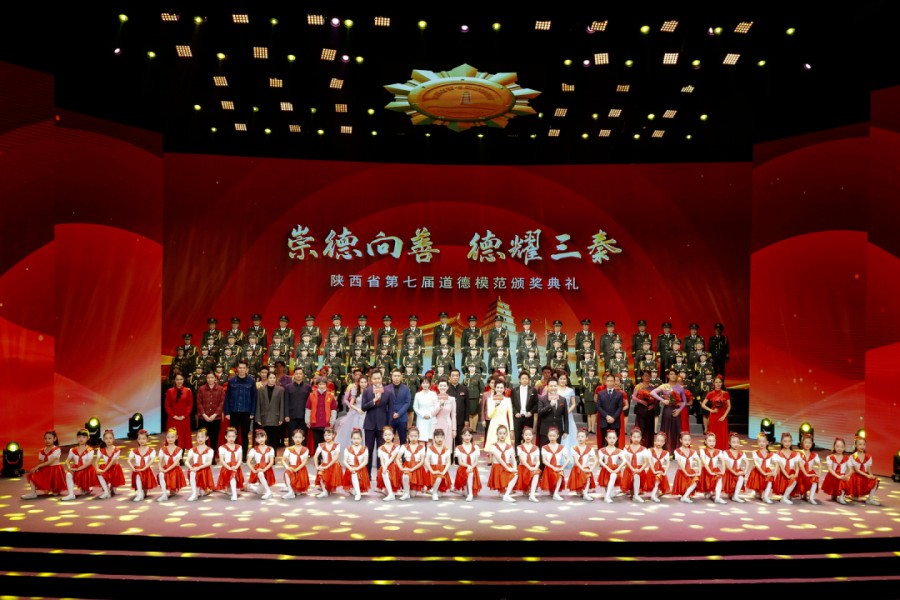 1月16日晚,陕西省第七届道德模范颁奖典礼在陕西广电大剧院举行,受表彰的道德模范们接受表彰和致敬。宝鸡上善公益联合会负责人张红兵,被授予陕西省道德模范提名奖。