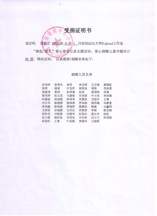 受捐证明