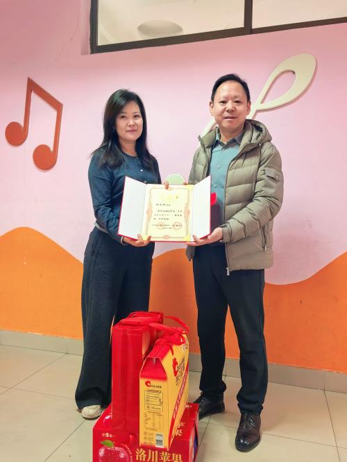 随后,慰问组一行来到东仁堡小学,曹会长为该校志愿服务先进个人王小岚颁发荣誉证书及慰问品。王小岚作为一名音乐教师,充分发挥专业所长,积极投身联合会公益事业,先后参与《歌声献给老功臣》慰问演出的节目编排和演出、“情暖最可爱的人”关爱优抚老兵项目走进扶风等活动,用个人专业特长和悠扬歌声为老兵送去温情,以实际行动诠释了新时代志愿者的责任与担当。