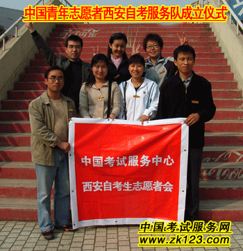 在这里,我们预祝中国青年志愿者西安自考服务队的队伍,日益壮大,尽己所能,为考生作出自己应有的贡献!