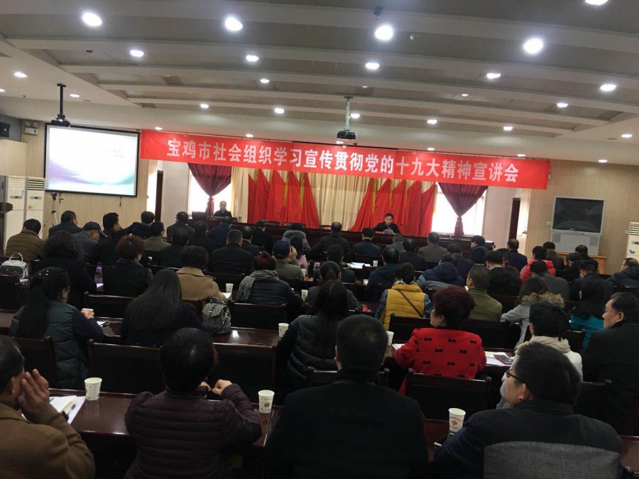 11月24日,宝鸡市社会组织管理局举办的“宝鸡市社会组织学习宣传党的十九大精神宣讲会”,在市民中心三楼会议室召开,会上邀请了宝鸡市委党校宋婉琴教授作了专题辅导报告。市级社会组织负责人及党组织负责人、市社会组织党委委员和中心相关人员,共计120余人参加了宣讲会。