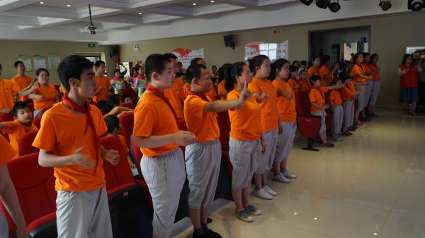 特教学校副校长蒋志瑛老师给孩子们指挥