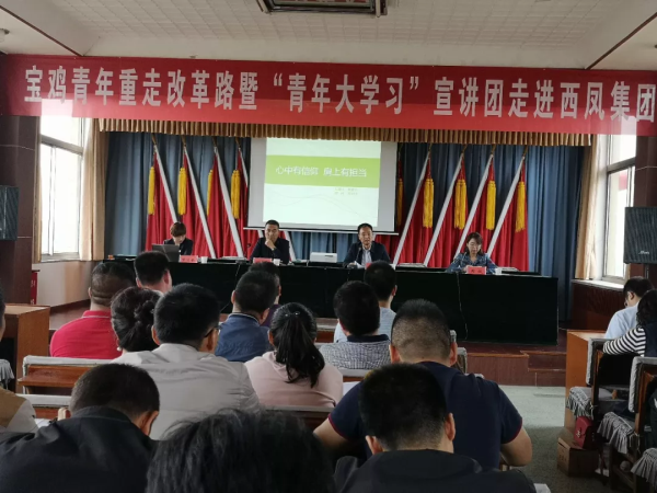 9月13日下午,由共青团宝鸡市委、宝鸡市青年联合会主办,陕西西凤酒厂集团有限公司、共青团凤翔县委承办的,宝鸡青年重走改革路暨宝鸡市“青年大学习”宣讲团走基层活动,在陕西西凤酒厂集团有限公司举办。中心志愿者同团十八大代表、团市委委员、市青联委员及各界青年代表60余人参加了此次活动。