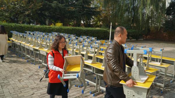 △志愿者搬课桌椅