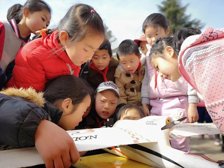 当天,宝鸡职业技术学院医学院团总支带领航模协会志愿者们,给孩子们上了一堂精彩的航模课。志愿者们来到了小学五、六年级为每位小学生发放了未组装的航空模型飞机,并带领小学生们来到了操场,让每一名小学生们亲身体验了一下飞行乐趣,并且带领小学生们参观了航模协会志愿者们所带来的苏-27、纸飞机、无人机等多架大型飞机模型。同时,志愿者们为全校师生展示了精彩而又形式多样航空模型表演。
