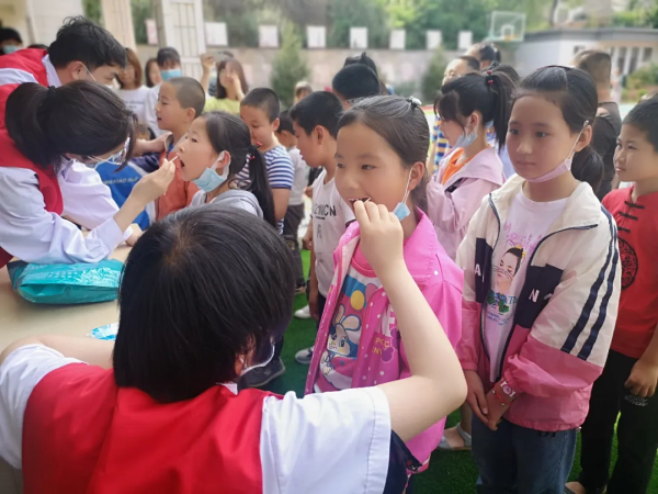 宝鸡市口腔医院由健教科牵头,组织该院党员和农工党员,为孩子们准备了口腔护理用品,走进校园开展口腔健康宣讲和义诊检查。