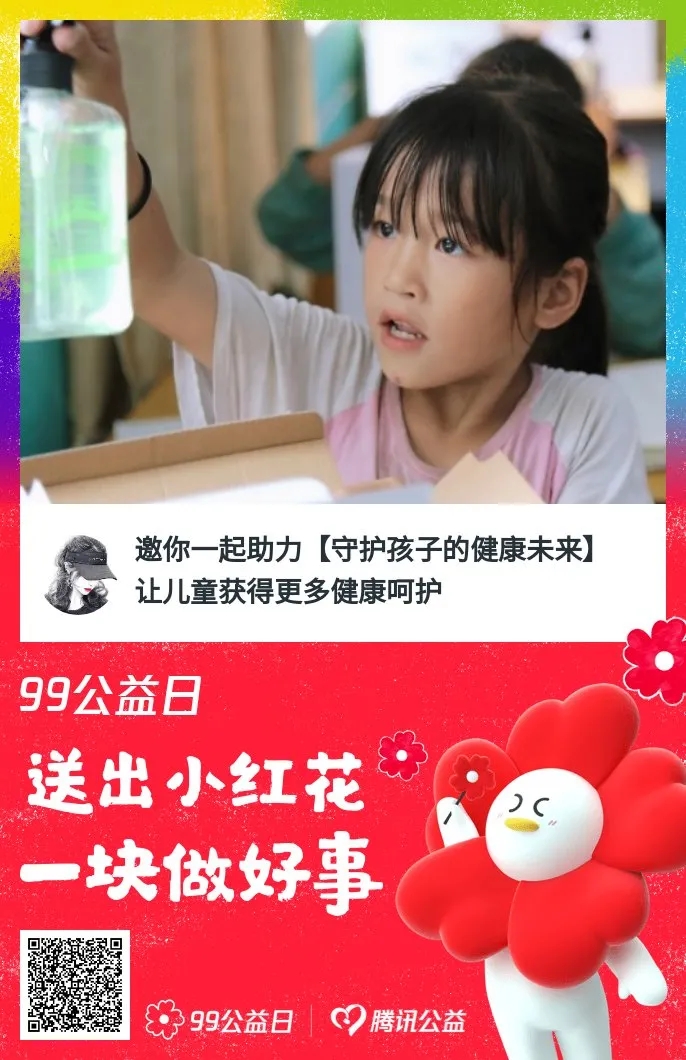 为了让儿童(尤其是乡村儿童、流动儿童)能够健康成长,由中华少年儿童慈善救助金会发起统筹管理,并上线腾讯99公益项目:“守护孩子的健康未来”(项目备案编号:53100000500021537WA20020),联合广西卡丝爱心扶助慈善基金会为项目开展提供1:1配捐。