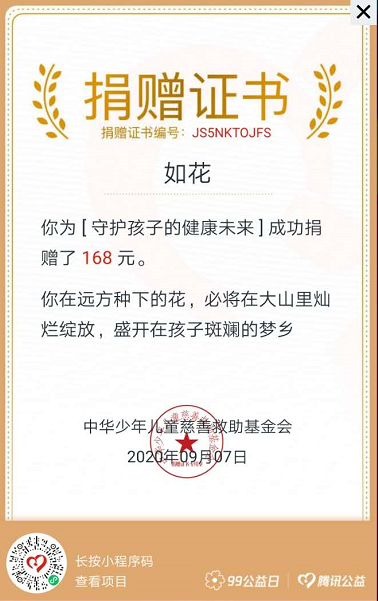 感谢每一个温暖的你,对本次“99公益日”活动的支持和参与,让我们一起做一件美好小事,让世界更美丽!