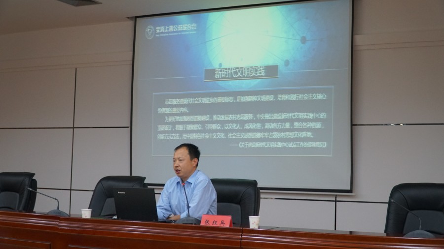 第二场分享,由联合会党支部书记、会长张红兵做了题为:“新时代文明实践——志愿服务策划与创新”专题分享交流。