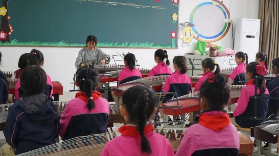 在古筝教室,由陈思思古筝艺术学校马亚飞老师现场演奏古筝,并为30名学生讲解了古筝的基本知识、手法等。