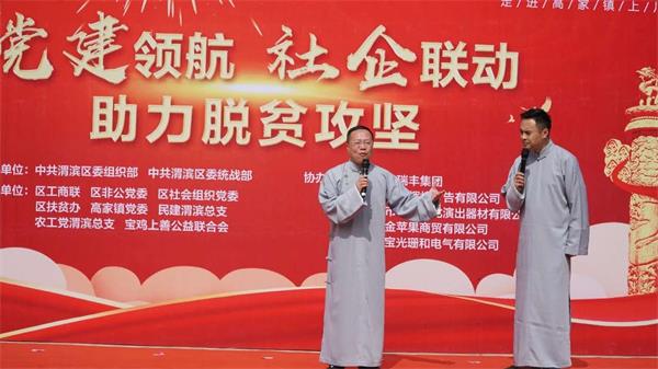 2020年9月29日上午10点,由中共渭滨区委组织部、区委统战部主办,区工商联、区非公党委、区社会组织党委、区扶贫办等单位联合宝鸡上善公益联合会承办,共同组织开展的“党建引航、社企联动、助力脱贫攻坚”活动,在高家镇上川村顺利举行。