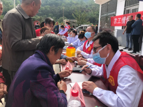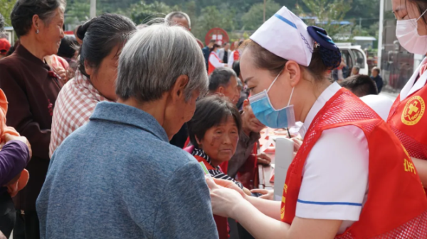 义诊专家耐心解答村民们的问诊,护士为他们测量血压、监测血糖,并宣讲秋冬季疾病预防常识及疫情防控相关知识,活动中还为村民们免费发放了预防流感的药品。