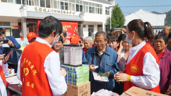 来自宝鸡市口腔医院的爱心志愿者们,在活动现场发放口腔健康宣传彩页,为村民赠送了牙膏牙刷等小礼品,指导村民正确刷牙,重视口腔健康,提醒村民及时治疗龋齿,口腔溃疡、重度牙周病等口腔高发疾病。