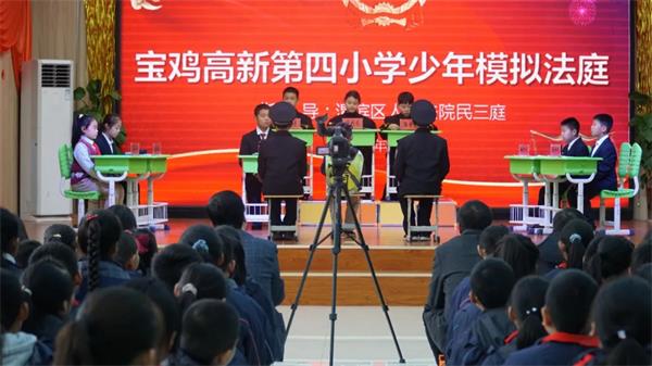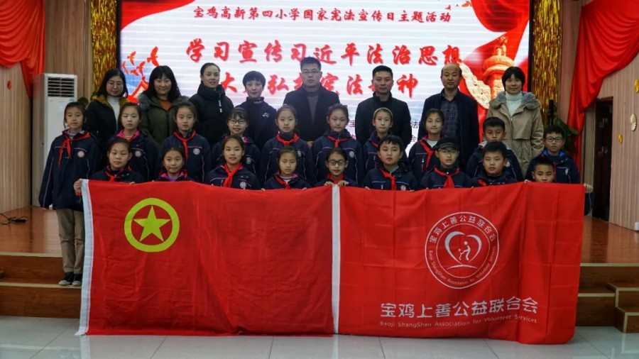 12月3日下午,在国际志愿者日和国家宪法日到来之际,宝鸡上善公益联合会团工委和青工委,联合渭滨区人民法院民三庭和宝鸡市律师协会法律援助及社会公益委员会爱心志愿者们,走进宝鸡高新四小,指导开展少年模拟法庭开庭和《民法典》宣讲活动。