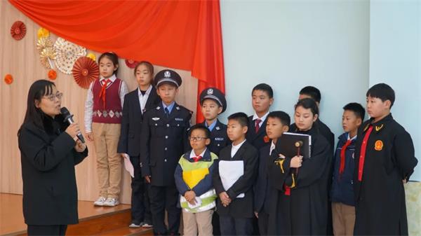 高新四小11名同学以某同学偷拿同学书包里钱财为案例,开展了一场“模拟法庭”开庭体验活动。为了让孩子们熟悉了解庭审全过程,本次模拟法庭由学生分别扮演了:审判长、陪审员、书记员、公诉人、被告人、原告代理人、辩护人、证人等角色。模拟法庭审判结束后,由渭滨区人民法院民三庭庭长白丽,对此次少年模拟法庭进行了点评。