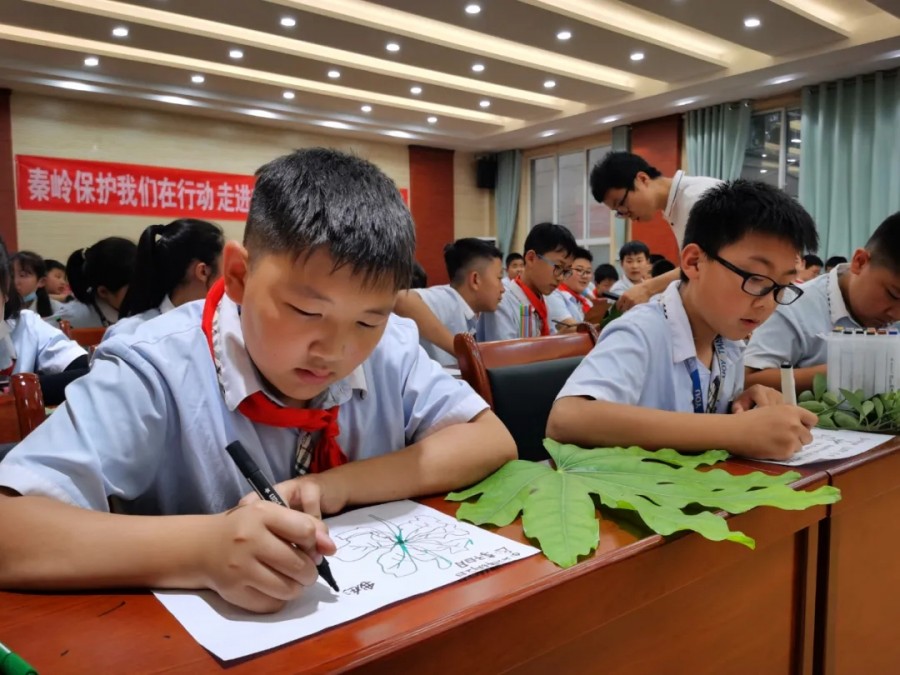 活动现场,专家先是通过互动提问的方式,带领学生们认识秦岭的植物和昆虫,并将学生们自己带来的各种树叶进行分析,通过这种趣味十足的学习和互动,孩子们仔细观察自然生物,从不同的角度了解自然的发展,不仅对大自然有了新的认知,同时也增强了同学们对生命的热爱。