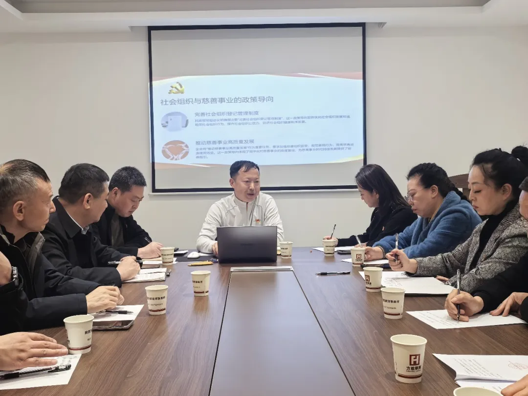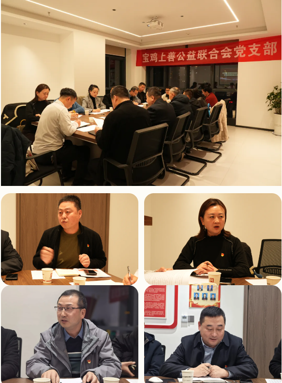 2025年12月19日,宝鸡上善公益联合会党支部于陕西方航律师事务所会议室召开了一场主题为“总结评议,凝心聚力”的组织生活会。此次会议由联合会党支部书记张红兵主持,全体党员齐聚一堂,共同回顾过往、剖析问题、规划未来。